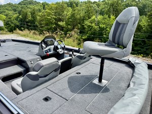A recessed trolling-motor pedal keeps the back strain at bay. The fore and aft decks are roomy enough for two anglers to fish without bumping into each other.