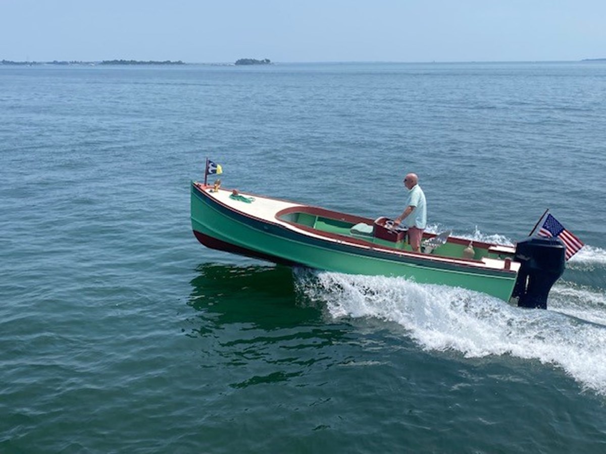 She is built light and thus easily powered. She is smooth, quiet and easily driven. But the real beauty of NIFTY is the aesthetic Mr. Townsend brings to the boat with many and varied details.