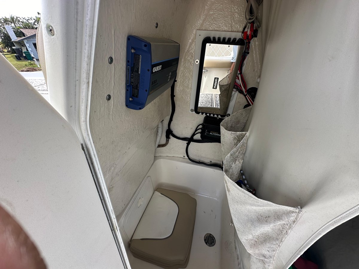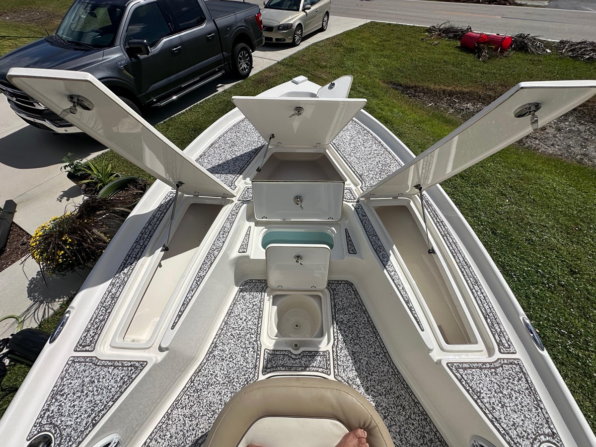 Dialed in 230 Bay Reef. 2 year old trailer, lift kept while in FL, seasonal time spent in freshwater in MN, 36V Minnkota, marine mat, twin power poles, jackplate, 250 SHO, entire boat has been ceramic coated, touched up and re applied yearly and shines great. Very impressive Fusion audio system with overhead, forward and aft speakers. Big fusion amp, sounds great, Fusion head unit, 12" Garmin with stereo ran through it and a big side scan transducer. Two bait wells, jump seats, 12v and 36 v onboard chargers as well as Minnkota "off road" charger for the 36v side while running, underwater lights, overhead lights, never used porti potty for under console. Boat has been very well maintained and is in great shape. Fast and rides great. These boats were optioned with 300 Yamaha or the 250 Yamaha SHO which is a pumped up 250 - great thing about the SHO option is it allows for a jackplate so you can get skinny, adjust the ride and can trim the engine all the way out if sitting at dock for awhile.