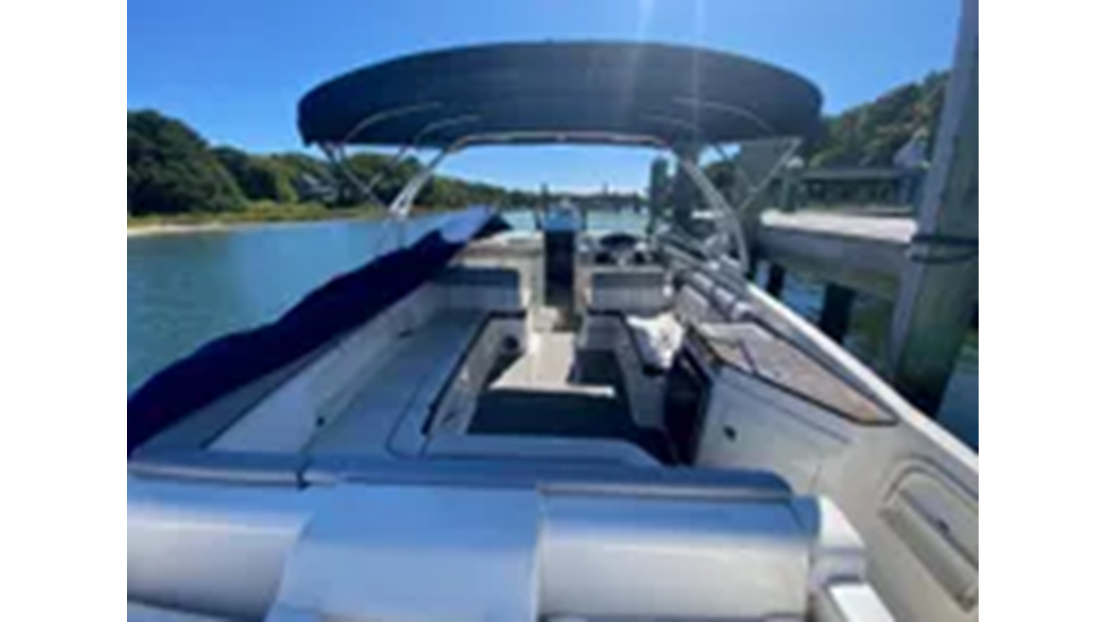 Abundance of available shade, via an optional aluminum arch w/ bimini or watersports tower w/ articulating bimini