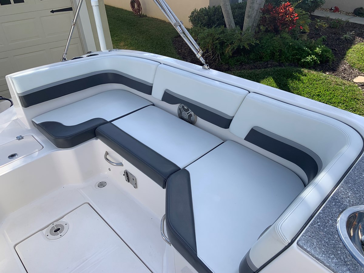 This particular 191SC has been stored inside since new. Has multiple covers to keep it that way. It has been given the best of care and maintenance. Loaded with extras and very low hours. This is very rare find. It is the very high end of any 20’ Deck boat you have ever seen. It has the spaciousness of a pontoon boat with the performance of a sport boat. It is a very big 20’ boat with lots of seating. Would make an excellent tender to a yacht as well.