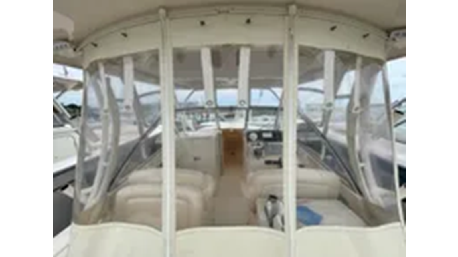 Hardtop w/painted aluminum frame, storage net, LED spreader lights, tri-colored (red, blue, white) LED recessed lights (4), side mounted rod holders (4), outrigger plates & front & side curtains (black or ivory)