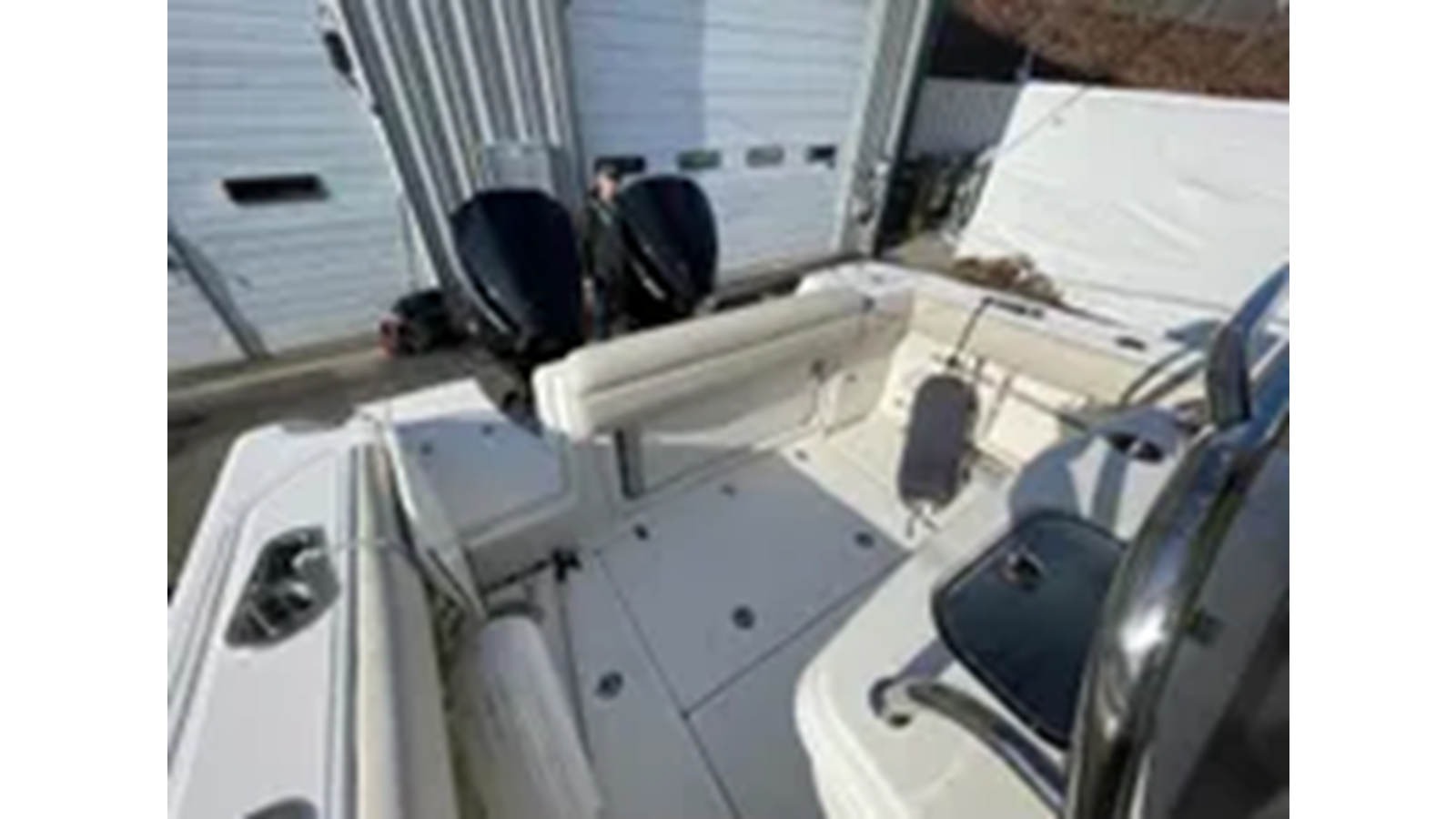 Just in--a gorgeous 2021 Boston Whale 250 Outrage w/twin Mercury 225 XL outboard motors w/206 HOURS and warranties until 2026. Light grey hull w/ blue accents and canvas covers for leaning post and console, premium package, bow table, stainless anchor and windless, full head w/vaccuflush, remote spot, hard top and outriggers, and many more. This Whaler has a 16" Simrad EVO3 MFD w/ Halo 20 radome and RS40 VHF. This Outrage really turns heads and has incredible performace, range, and ride. Perfect for a day offshore fishing or hanging at the beach. We will be unwrapping this boat next week and grabbing additional pictures.