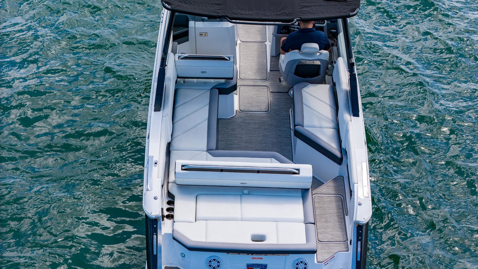 The R8 represents the next generation of R Series boats from Cobalt. At 27’10”, what really makes the R8 stand out on the water is the added size. We didn’t just make it longer, we totally rethought and redesigned every aspect of the R8 resulting in a higher profile and more freeboard, a roomy, expansive interior, with both bow and cockpit larger fore to aft, providing extra comfort for passengers and plenty of room for their things.