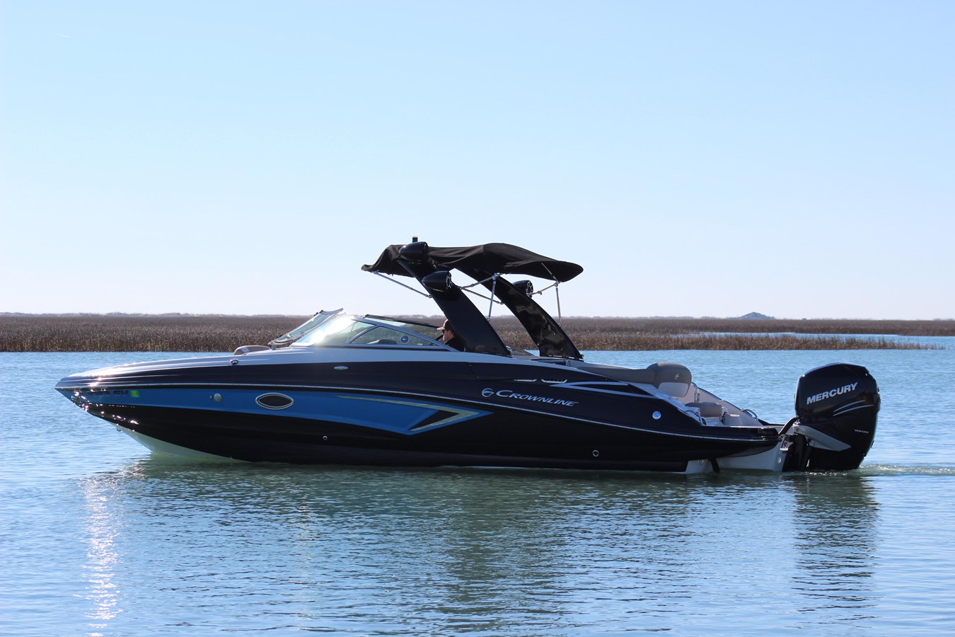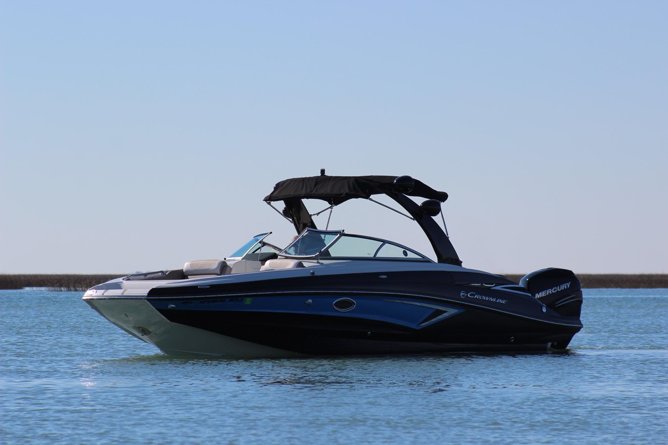 The E285 XS is a 27′ 10″ outboard crossover model that combines the F.A.S.T. Tab® performance and sleek style lines of a Crownline bowrider with the roominess comfort of a family-friendly deck boat.