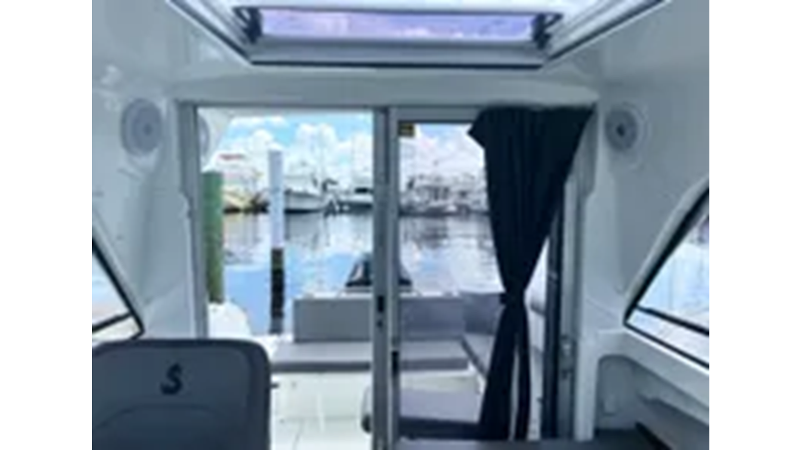 The care taken in designing the Antares 7 silhouette follows into the saloon, which has a particularly attractive helm station. Fitted with an all-black dashboard in a single piece, it elegantly compliments the boat's overall finish. The many glazed windows and ventilation openings offer all passengers superb panoramic views and excellent aeration. The cabin's numerous storage spaces and modularity make for a very comfortable life on board.