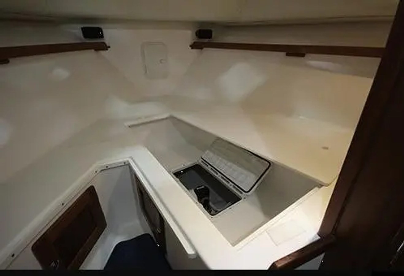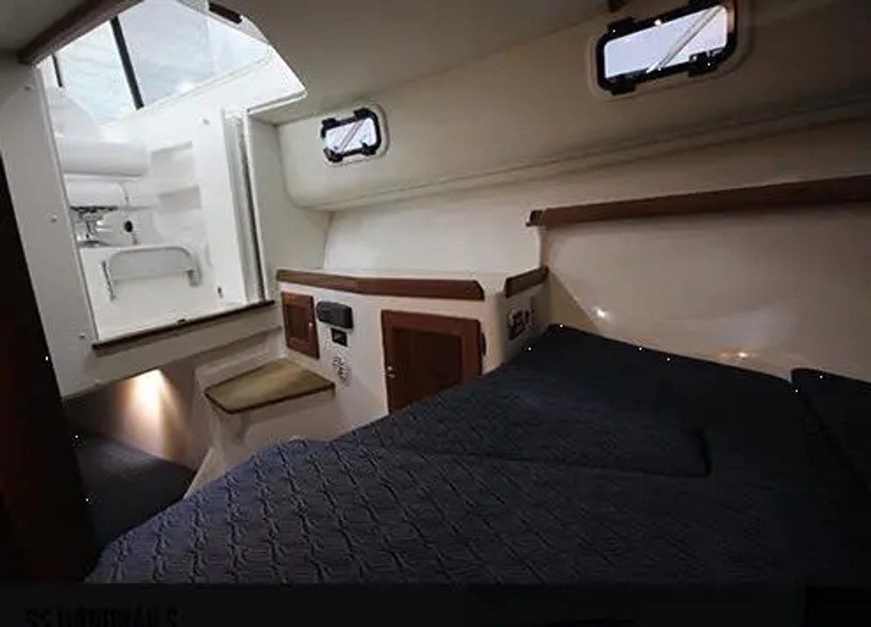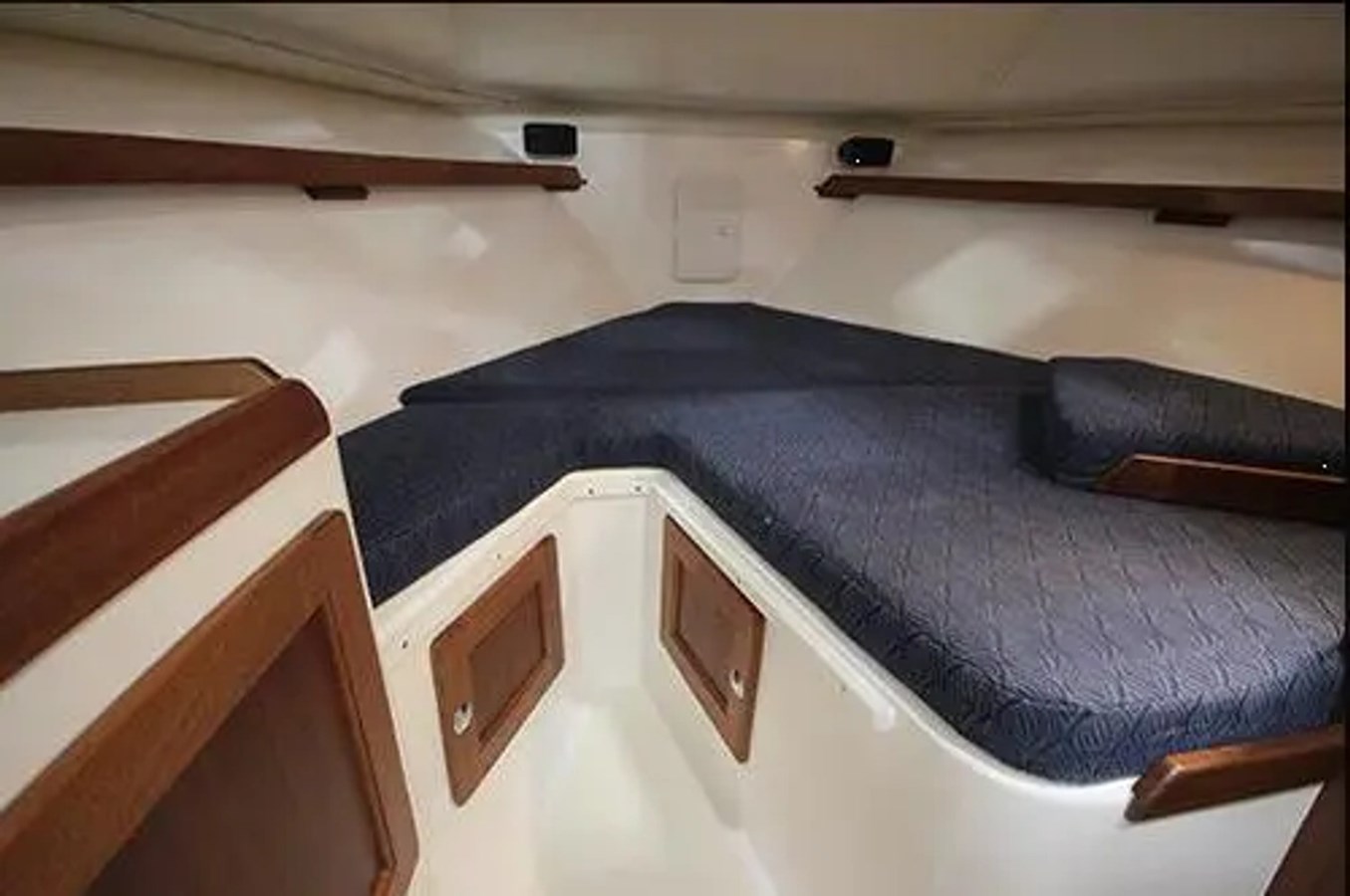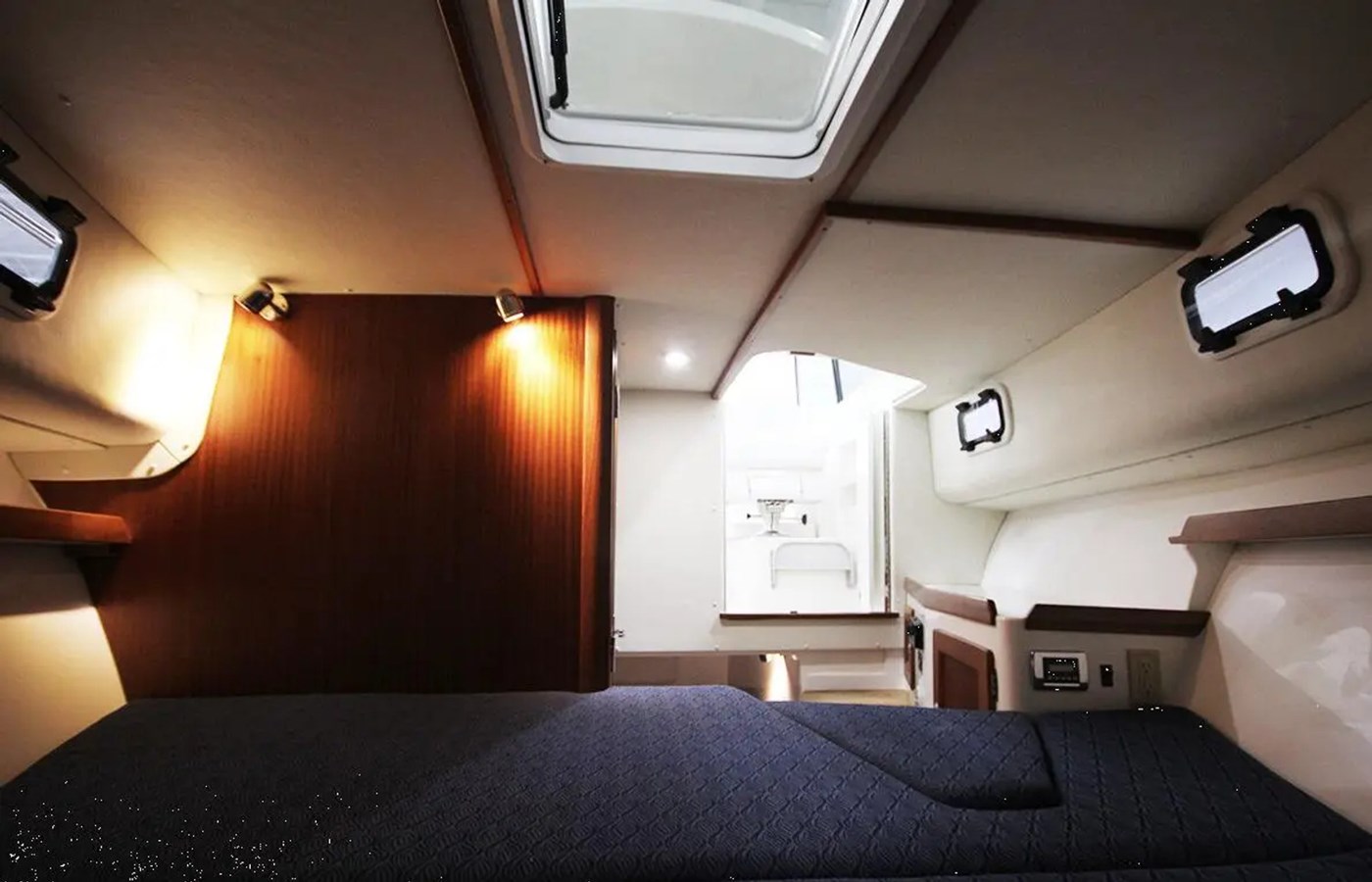 Huge fuel range to fish the canyons or cruise the coast. 240 gal (useable 216 gals) fuel, 40 gals illuminated live well, tackle drawers, and rigging station- all standard. NorthCoast pilot house sport fishing boats sport amazing performance and comfort. Sleeps four with two in the v-berth and two in the aft sleeping area. The NorthCoast 285HT has a fishing heritage your crew will appreciate each time you head out to sea and back. Excellent 360-degree visibility with 6'2" headroom, L-shaped seating, a helm area, and a dash with enough real estate for all of your favorite electronics.