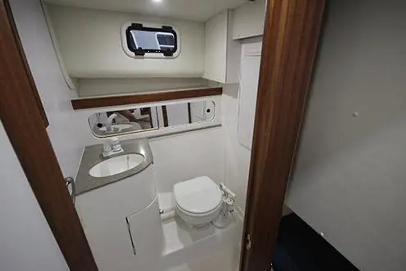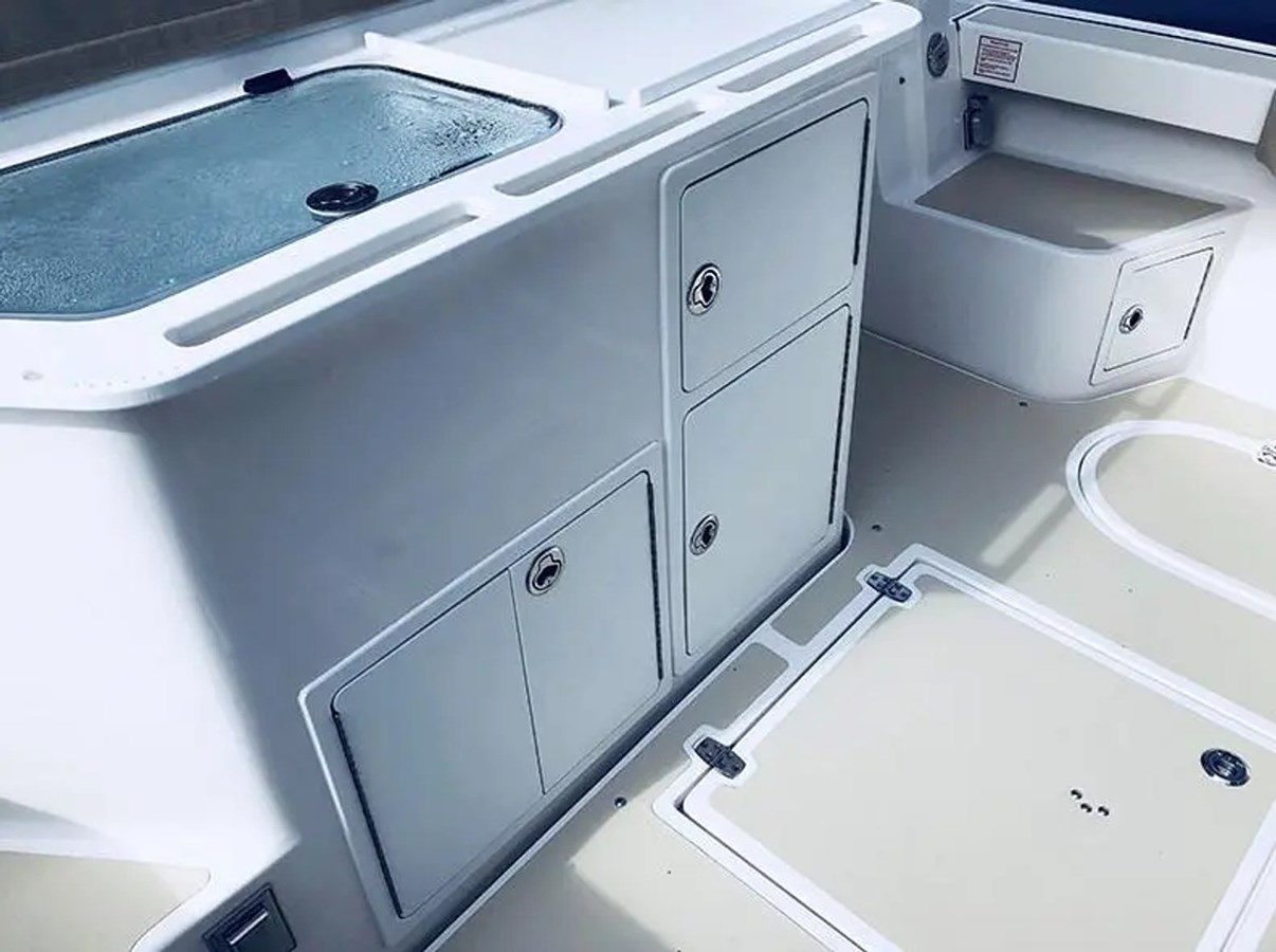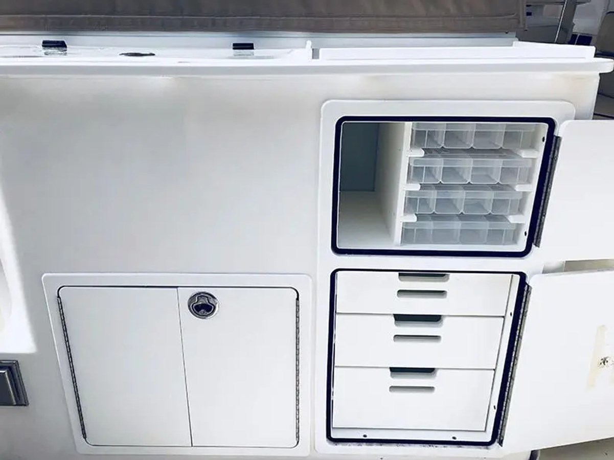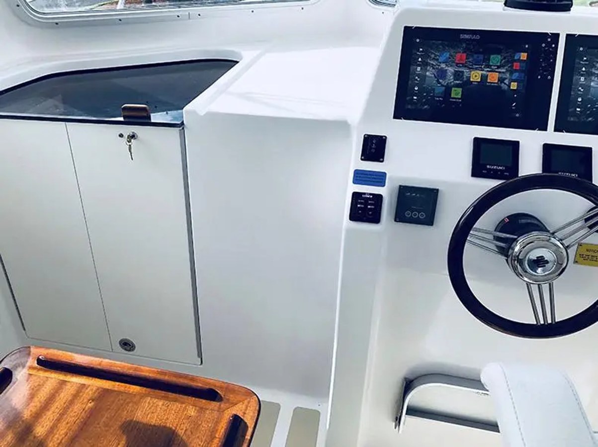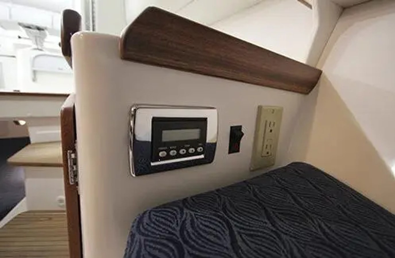 Huge fuel range to fish the canyons or cruise the coast. 240 gal (useable 216 gals) fuel, 40 gals illuminated live well, tackle drawers, and rigging station- all standard. NorthCoast pilot house sport fishing boats sport amazing performance and comfort. Sleeps four with two in the v-berth and two in the aft sleeping area. The NorthCoast 285HT has a fishing heritage your crew will appreciate each time you head out to sea and back. Excellent 360-degree visibility with 6'2" headroom, L-shaped seating, a helm area, and a dash with enough real estate for all of your favorite electronics.