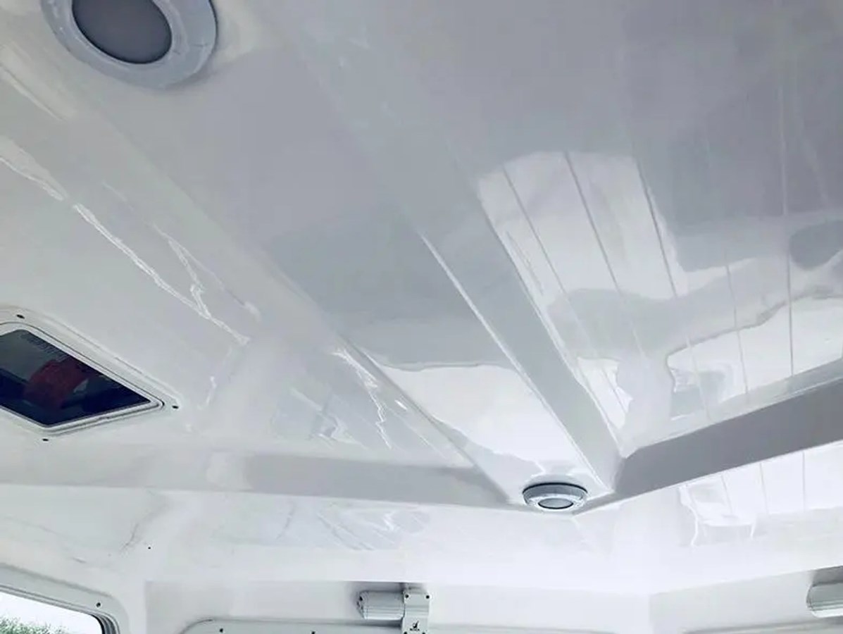 Bootstripe - White, Nonskid color - Blue sky w/white accent, Upholstery Color - White, Aft Canvas color - White, Interior Color - Silver