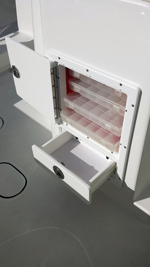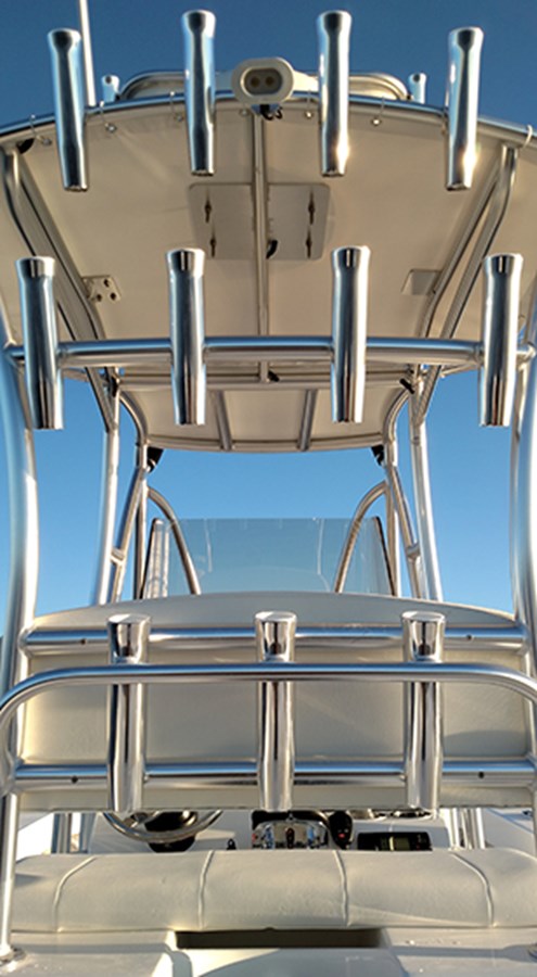 A true hybrid, the Tideline 235 can do anything a bay boat can do but is more offshore capable than any bay boat on the market today. With a shallow draft, it tracks very well with a bow mount trolling motor, is quiet with no hull slap and is a great inshore vessel. But unlike so many other bay boats, the Tideline 235 Hybrid is truly offshore capable. Rigged with twin engines, a large fuel capacity, insulated fish boxes, and a soft and dry cat ride, this boat is just as comfortable outside the inlet as it is staying inside.