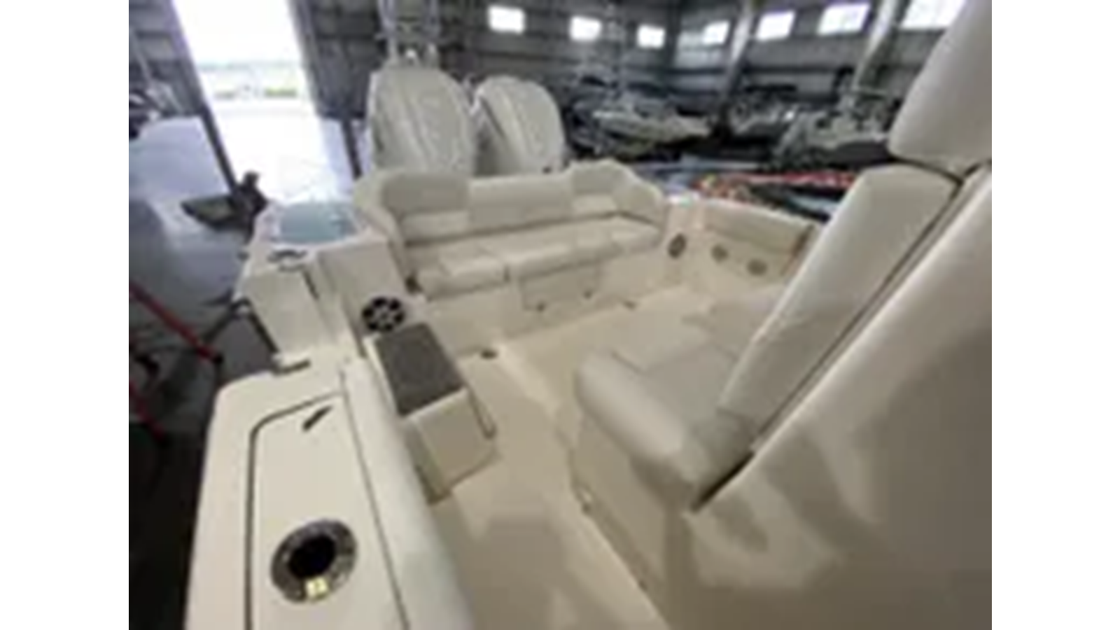 2025 Model - Just Arrived! Manta Grey Full Hull Premier Opal Interior Vinyl Twin Yamaha F350XSA2 (DEC) (DES) White Yamaha Integrated Steering w/ CL5 Gauge-Garmin Ready Yamaha Twin EX Autopilot & Maneuverability (Joystick) Upgrade Garmin Twin 8612XSV Touch Combo w/ VHF Garmin GT15M-TH 600W Chirp & GT36UHD-TM Clear/Sidevu Garmin Fantom 24 Radar Garmin GMX-54 Sirius Satellite Weather Ready Fusion Apollo MS-RA770 Apple Airplay Touch 4 Zone With 8 Signature Series Speakers 10" Signature Series Subwoofer, 8 Channel 2000 Watt & Monoblock 2250 Watt Amplifier (Upgrade) Wireless Phone Charger White SS Rub Rail Upgrade Hardtop Radio Box, Cargo Net, LED's Rod Holders w/ Powdercoat Accent Colored Hard Top 11.1 Tackle Center Flip-Up Bolster Leaning Post & Rear Facing Seating w/ 12-3700 Plano Std, 4-3700 Plano deep, 2-Large Bins & Insulated Box Under Rear Seating-Powder Coated Interior LED & Underwater RGB Lumitec Poco Lighting Marine Decking Pkg: (Helm Pad, Dash Pad, Foot Rests) Bow Filler Board & Cushion Pop-Up Fender Holders (4) Toilet, Pumpout Built-In 9 Gallon Tank Transom Dive Ladder White Powdercoat