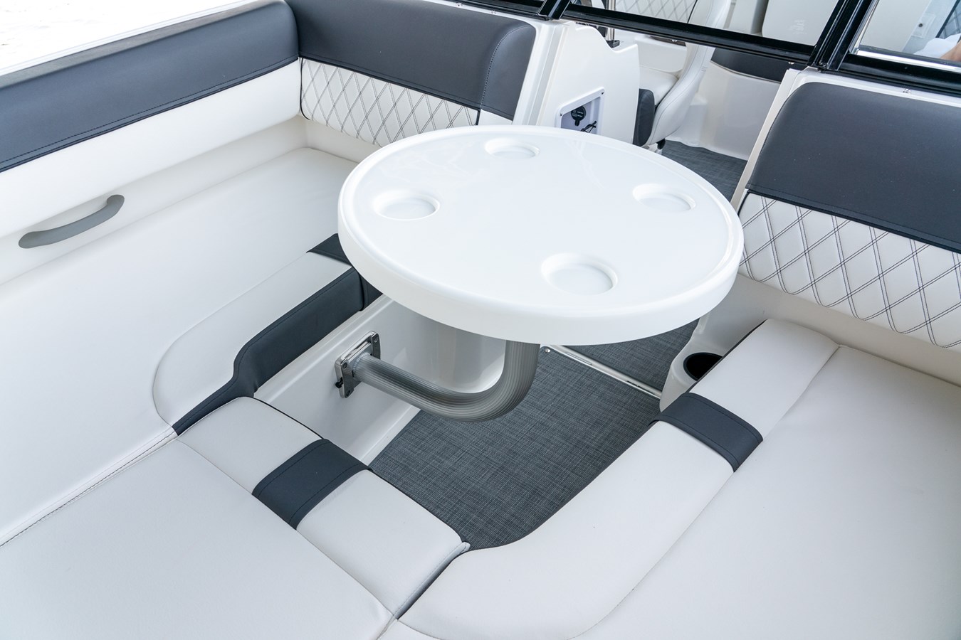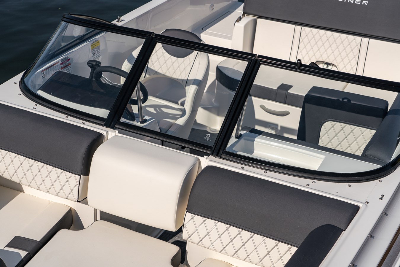 The 2023 Bayliner DX2000 is a versatile 19-foot deck boat designed for families and water sports enthusiasts seeking comfort, style, and performance. It offers three customizable interior layouts: a side console with maximum seating, a side console with an entertainment center and sink, and a dual console cockpit with a full windshield. Powered by a Mercury 150HP FourStroke outboard engine, the DX2000 ensures a smooth and stable ride. Its spacious cockpit features L-shaped seating for up to 10 passengers, a convertible aft bench seat that transforms into a sun pad, and ample storage including in-floor lockers and an integrated cooler. With its stylish design and thoughtful amenities, the DX2000 is a compelling choice for those seeking a reliable and enjoyable boating experience.