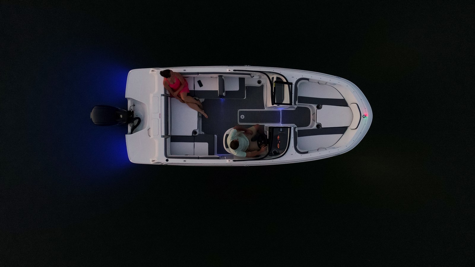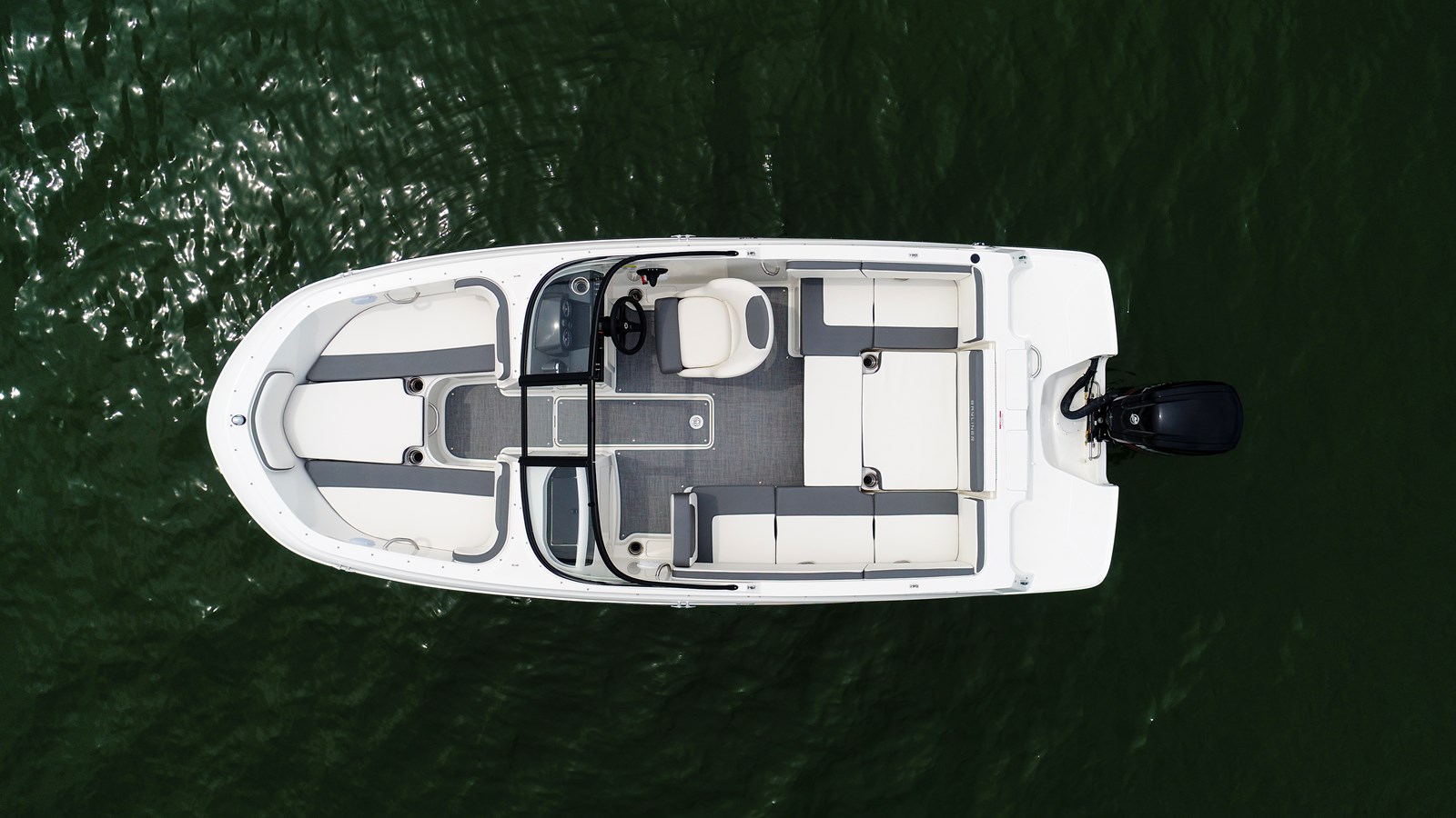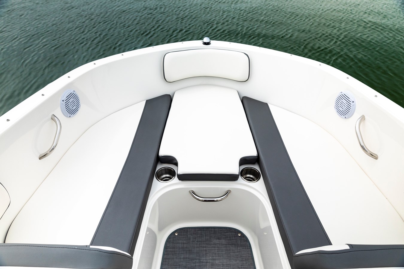 Its BeamForward design maximizes interior space by extending the full beam forward, while the AftAdvantage hull design increases the rear seating area by shifting it to the aft-most point of the running surface, allowing the swim platform to extend beyond that. Standard features include a sport-style windshield, swim platform with telescoping ladder, in-floor ski/wakeboard storage, and a waterproof 120-watt AM/FM stereo with Bluetooth capability, offering both fun and functionality in a compact package.
