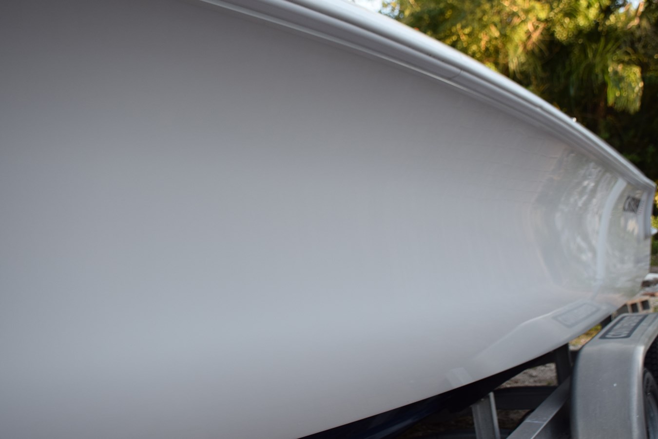 - White gelcoat hull with Navy blue gelcoat bottom (no bottom paint)