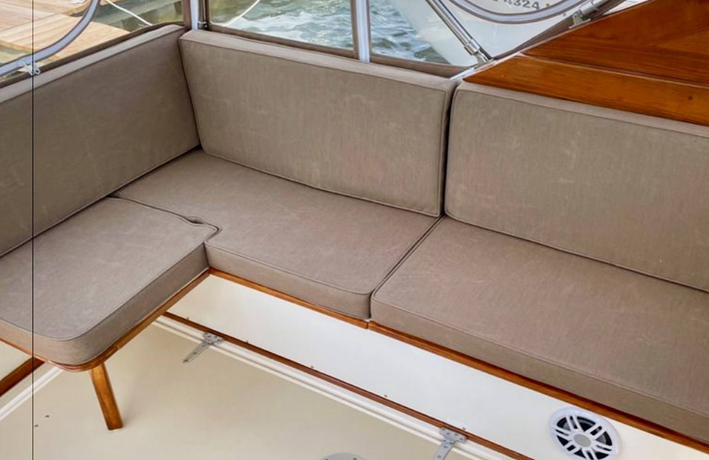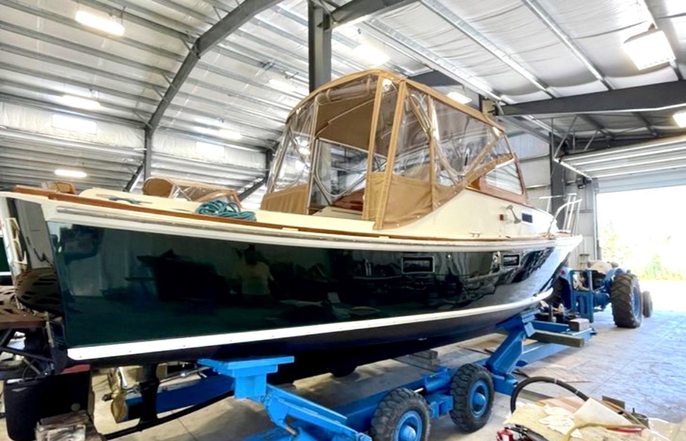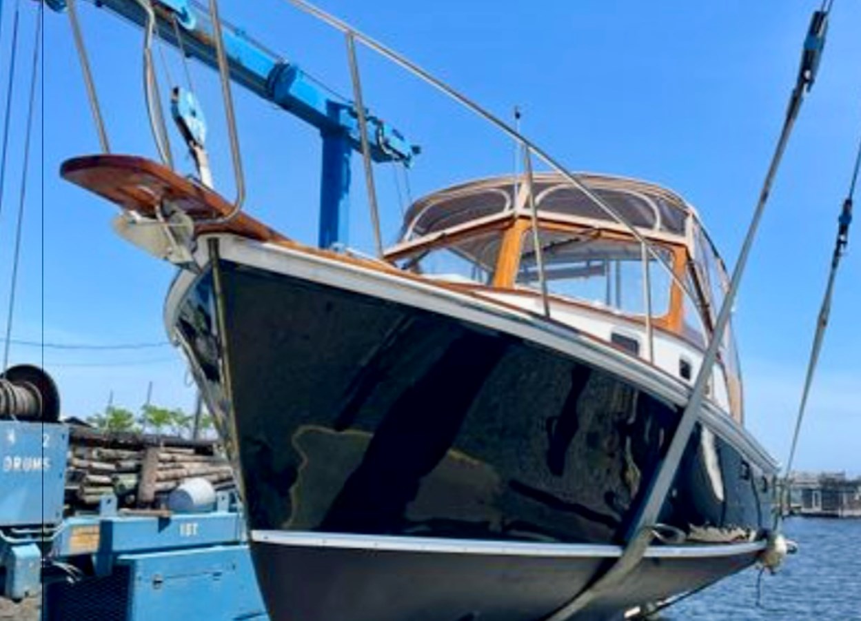Walk two steps down below, you have the galley to port, head through the privacy door to starboard, and v-berth forward. Her interior is virtually untouched featuring the classic Herreshoff white bulkhead, teak trim, and teak and holly sole.
