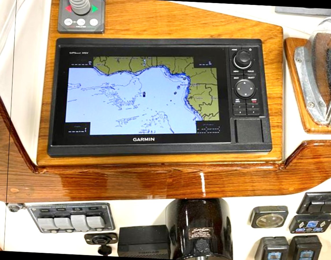 Aft from the berth and to starboard is the head. Featuring a VacuFlush head rarely seen on boats this size in addition to a shower, sump pump and stainless sink.