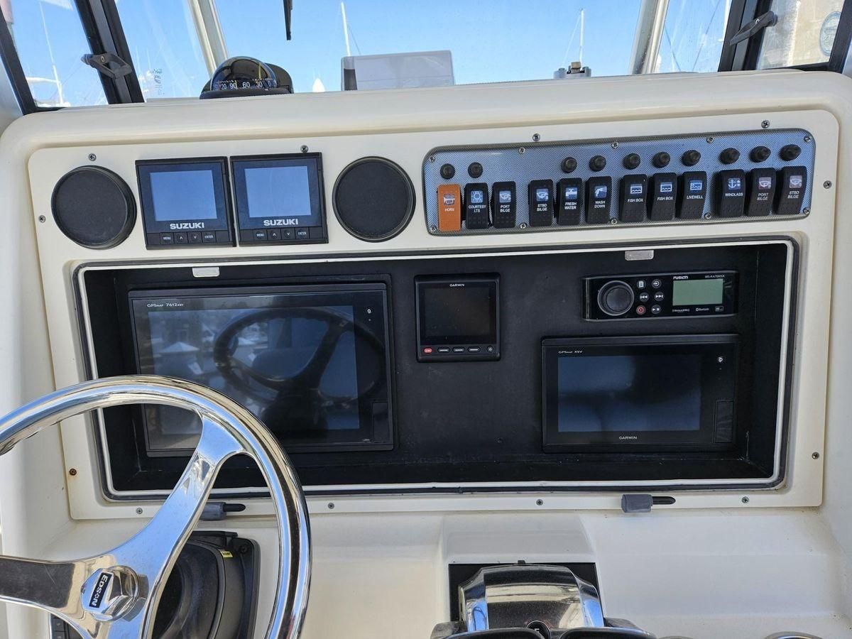 - New Seastar steering , new Garmin autopilot , new VHF radio , and new Sirius XM antenna for enhanced functionality.