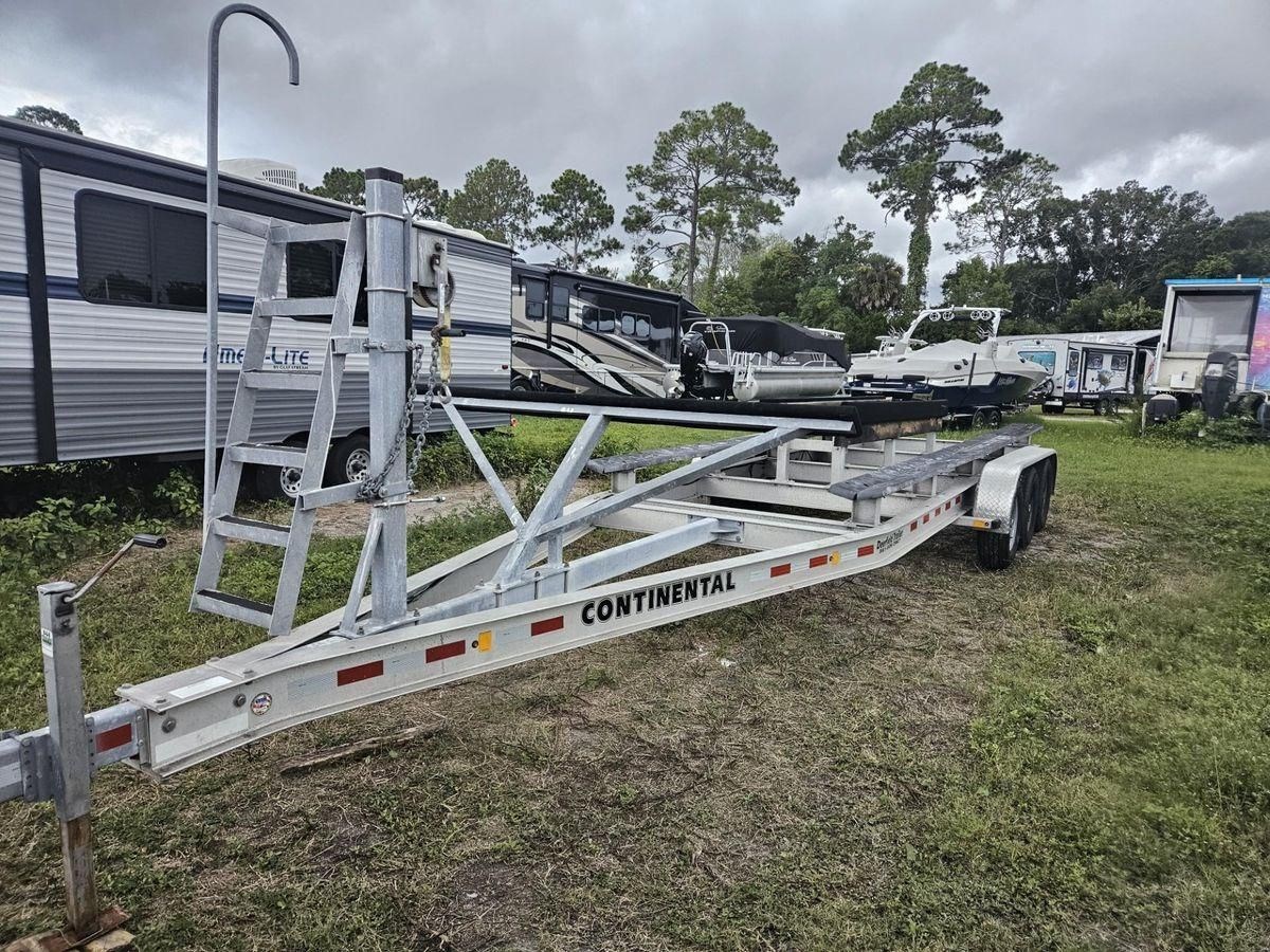 Additionally, this boat includes a 2017 Continental tri-axle aluminum trailer equipped with a new stainless steel brake package and new tires , making transport a breeze.