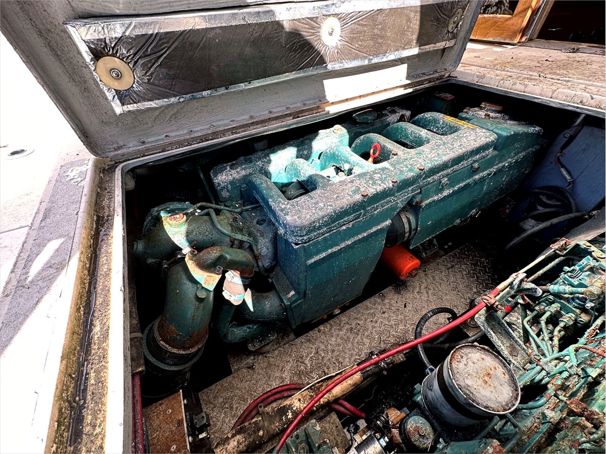 Additionally, the port engine requires an impeller, the starboard engine needs a new starter wired in, and all systems may need attention, replacement, or repair due to the water intrusion. The generator has never been used and prior to the water intrusion was suspected to be in functional condition. The tower has been modified (removed) for transportation purposes.