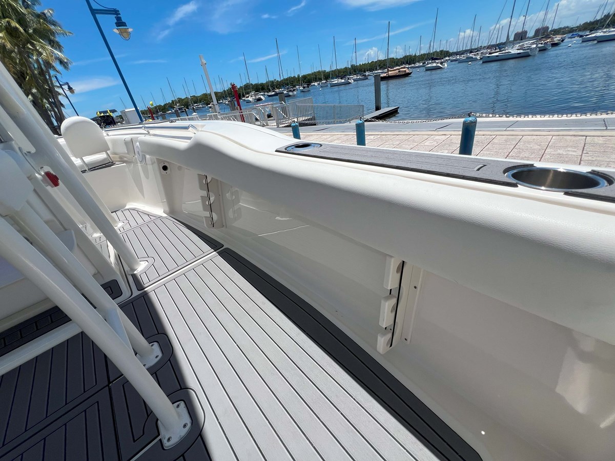 Outfitted with SeaDek flooring throughout , it offers a comfortable, non-slip surface ideal for fishing, family cruising, or lounging in style. A custom trailer is included , making transport and storage easy and convenient.