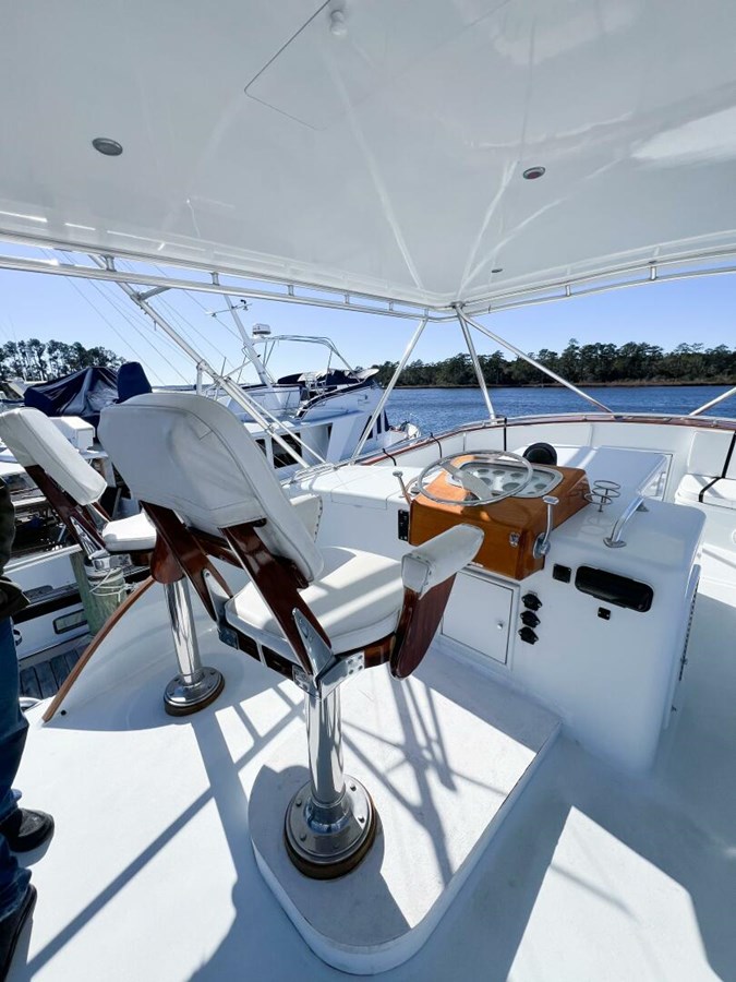 - Spacious cockpit freezer, rod holders, and a teak Pompanette fighting chair.