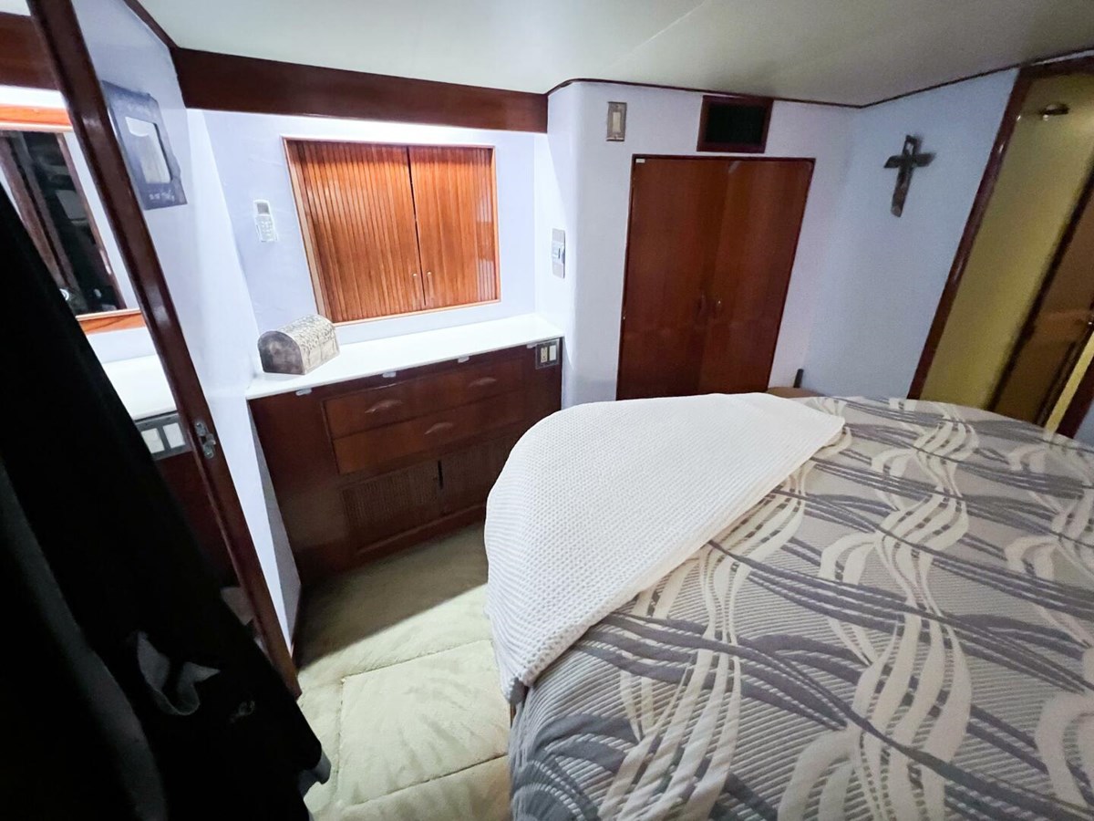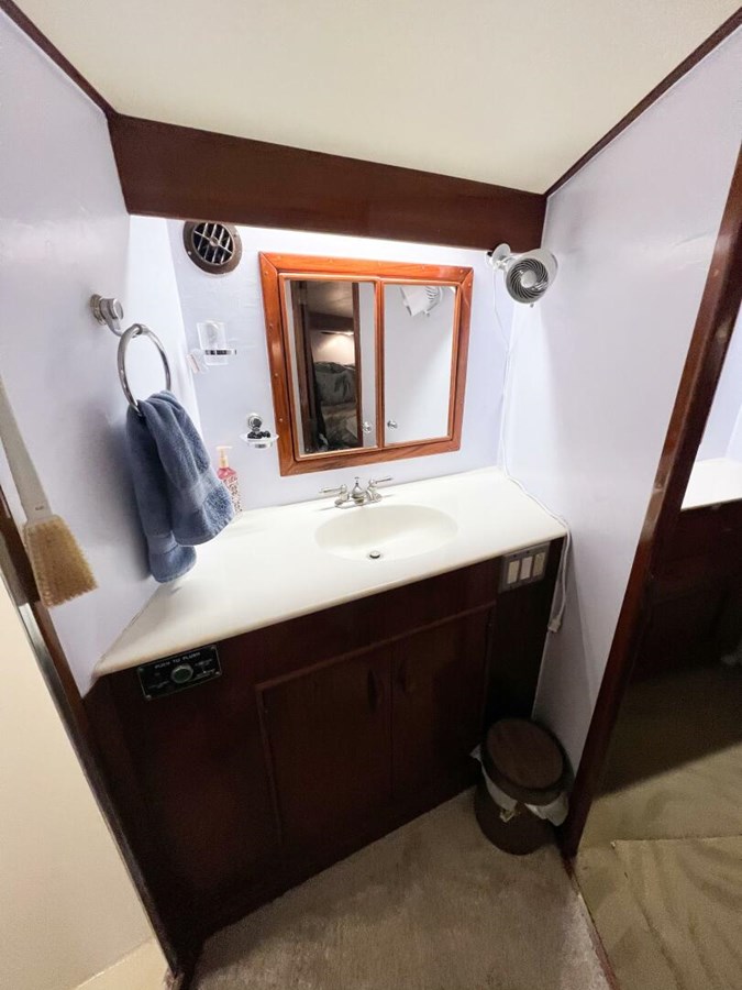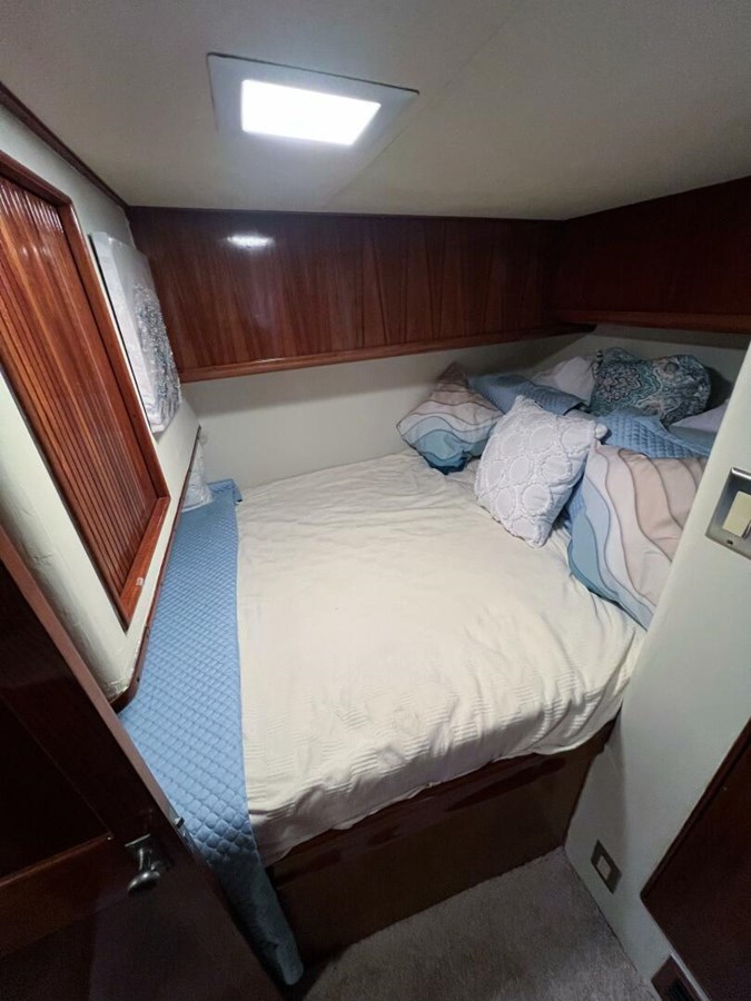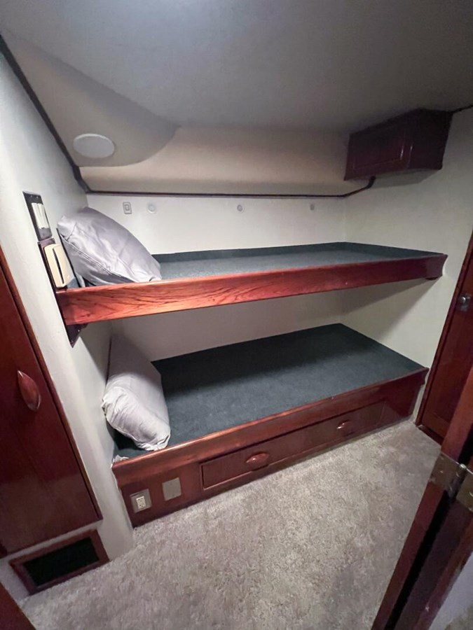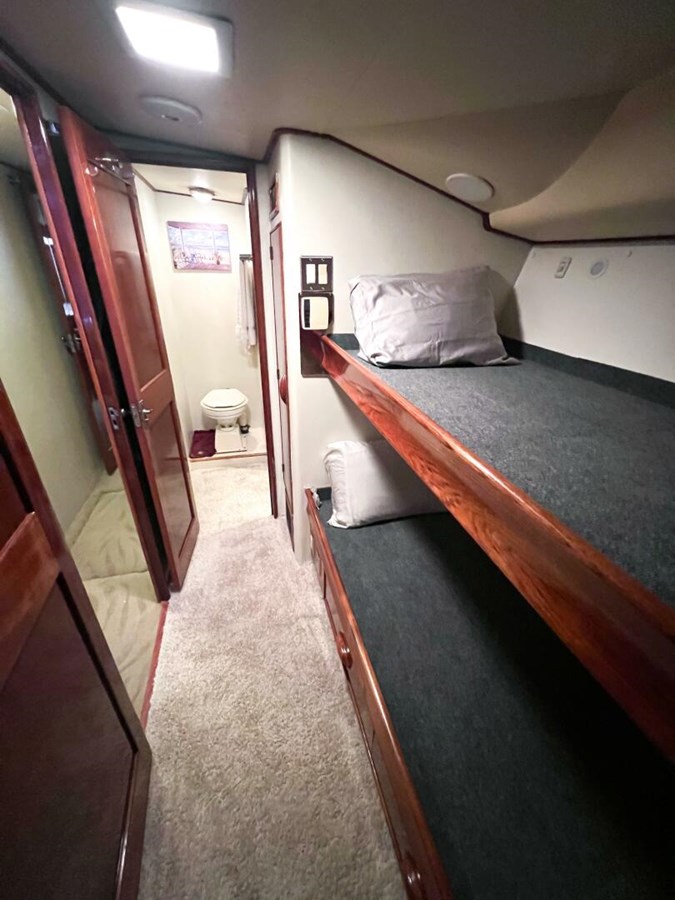 - Guest Stateroom: Starboard, with upper and lower berths, access to a third full head, and a convenient utility room aft.