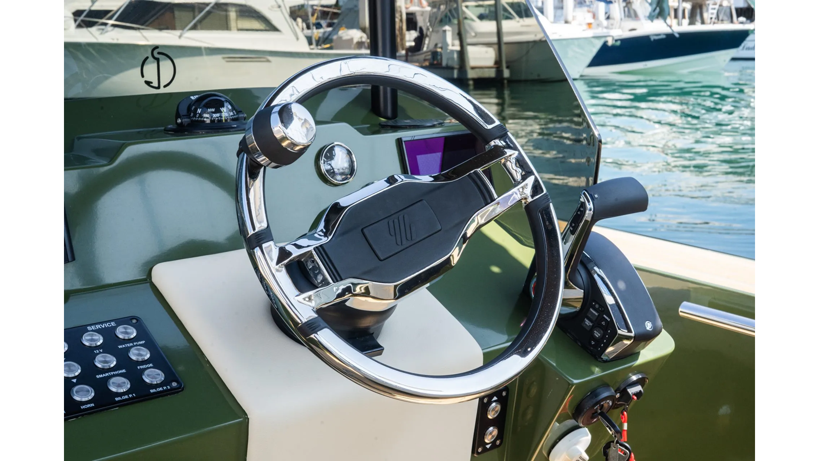 The distinguishing high-flared bow and the lines of the hull allow you to navigate under difficult conditions in complete safety. High sides provide excellent stability and a perfect dry deck even in rough waters.