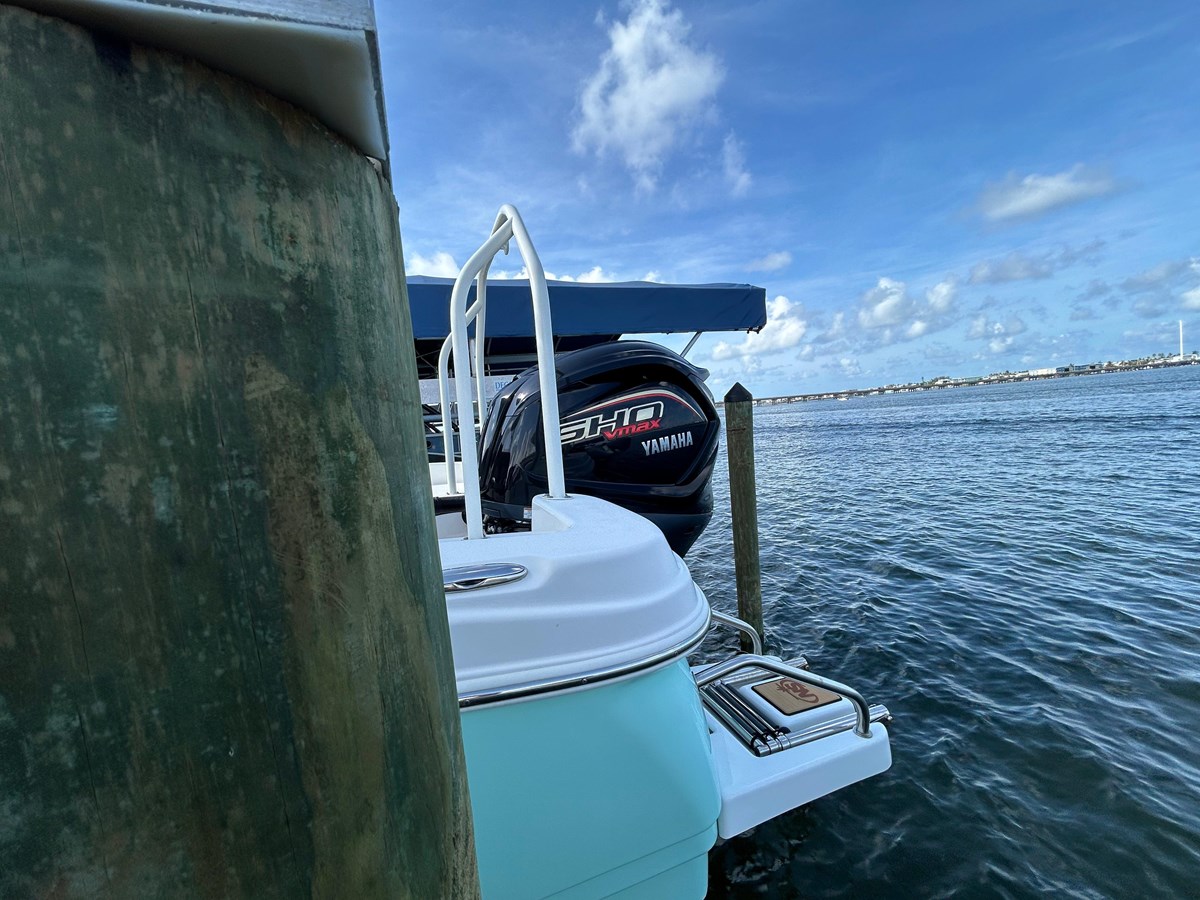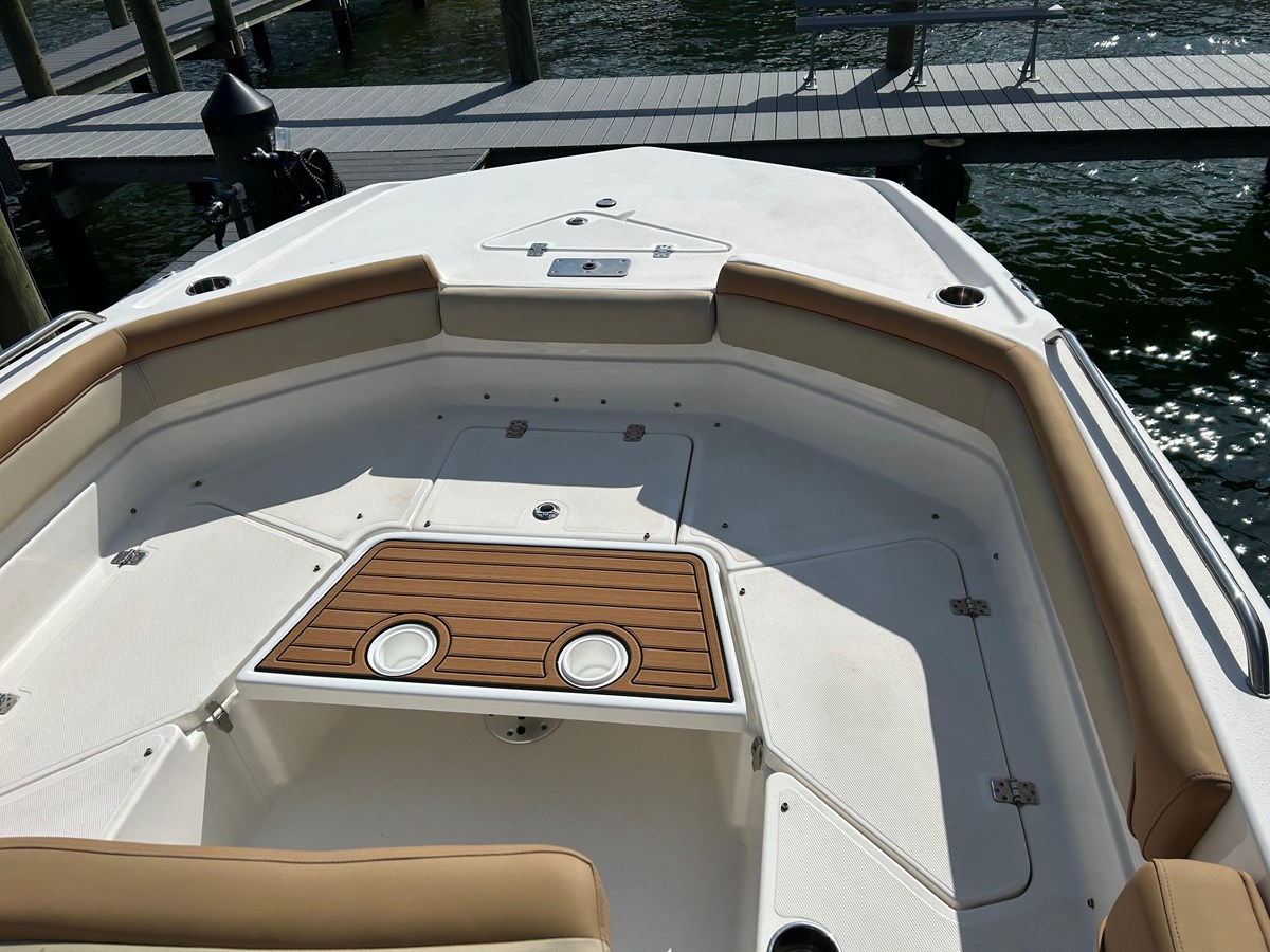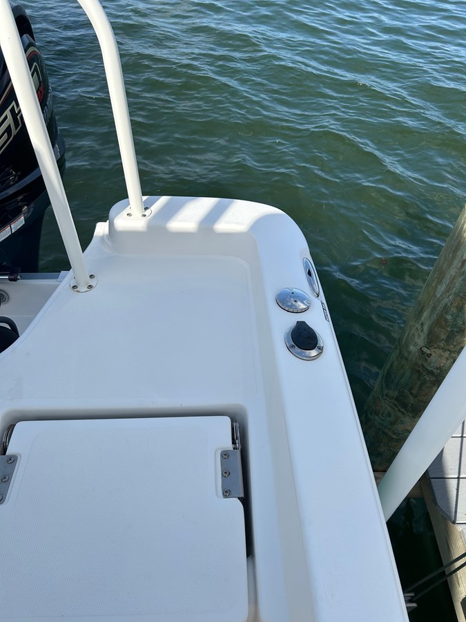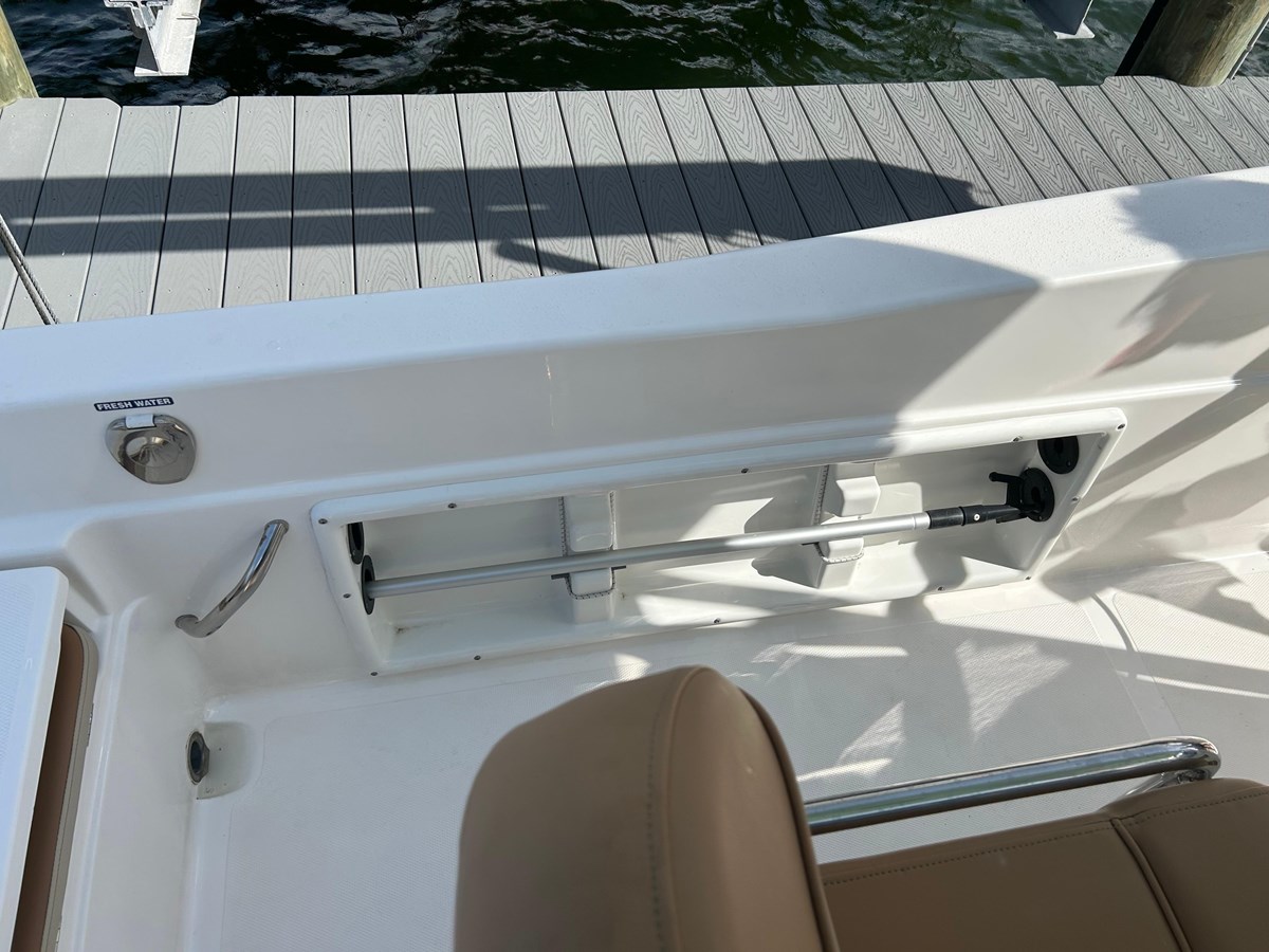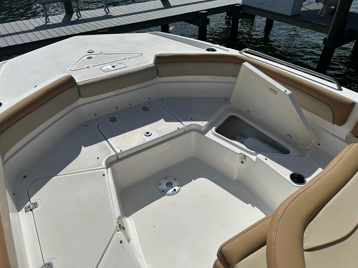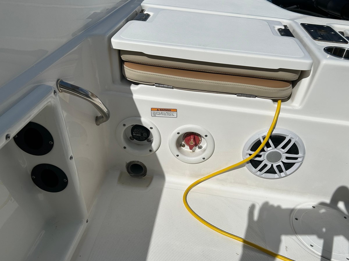 The NauticStar 231 Hybrid addresses a few different boating needs. The 231 is off shore capable , with a shallow draft can access skinny water as well. With the tow pilon & swim platform, it is able to take the kids tubing as well. For Fishing, the console on the 231 Hybrid is fitted out with rocket launchers and rod holders, and an enclosed head with a Porti-Potti compartment comes standard. Two aerated live wells, forward 17 gallon, aft 25 gallon. Two insulated fish boxes, onboard 72-quart coolers . This copy is nicely powered with the upgraded, reliable Yamaha 250 SHO with 11hrs on the engine. Most center console boats do not have much in the way of storage, this model has plenty of storage both bow and stern.