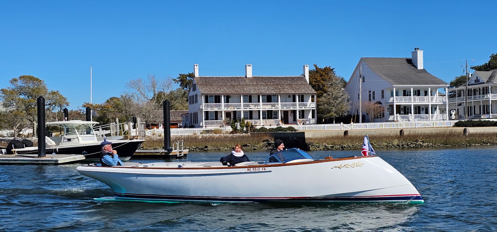 PATIENCE is a tribute to great yacht designers of the pre-war era. The ducktail in the transom is inspired by John H. Wells, who was well known for designing his fast-running commuters for Consolidated, Defoe, and the New York Launch and Engine Co. The transom is inspired by the legendary designer L. Francis Hereshoff while the bow is inspired by WWI battleships.