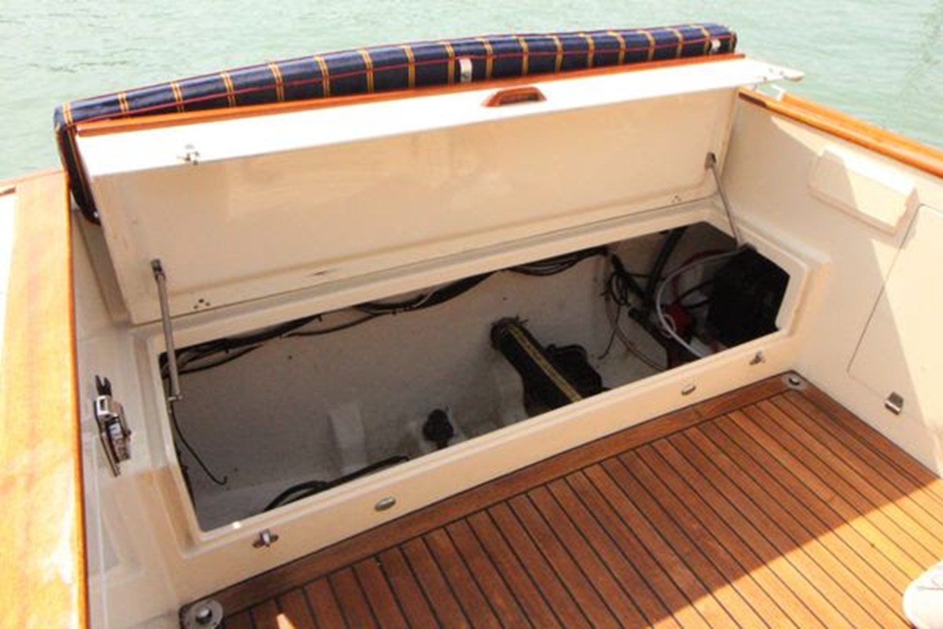 She is in "Turn Key" condition. Motor serviced in February 2023 and full detail in May 2023. Open checkbook policy owner and e xtensively refurbished over the last 3 years including all new Awlgrip hull paint, all exterior brightwork sanded to bare wood and 5 coats of varnish and clear coat applied, new engine turbo charger, new Sidewinder stern thruster, new Clarion Bluetooth enabled stereo, new Horizon VHF, new ProMariner battery charger.