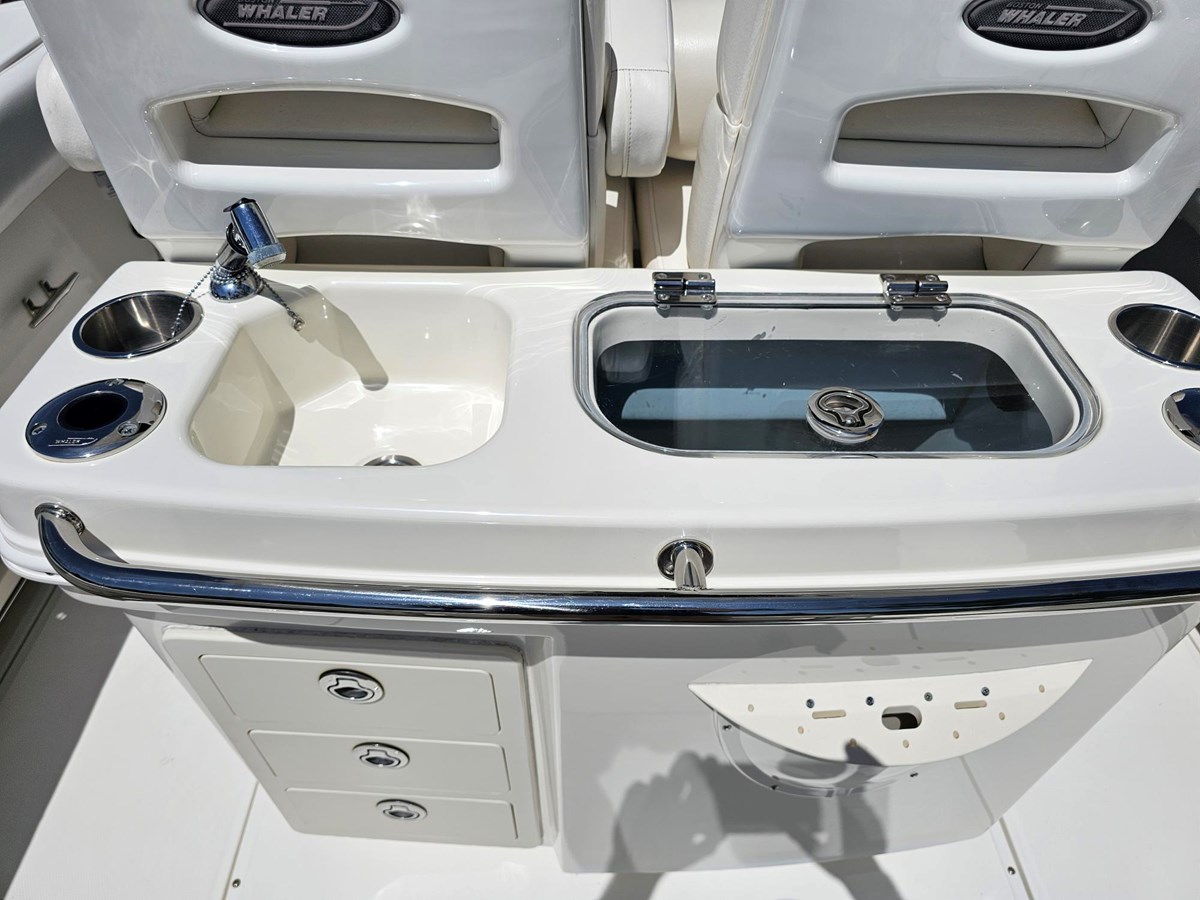 Fishing Ready: With its spacious and open cockpit, this Boston Whaler is a dream for anglers. Equipped with a large fish box, livewell, rod holders, and plenty of storage for gear, you’ll have everything you need to make the most of your time on the water.