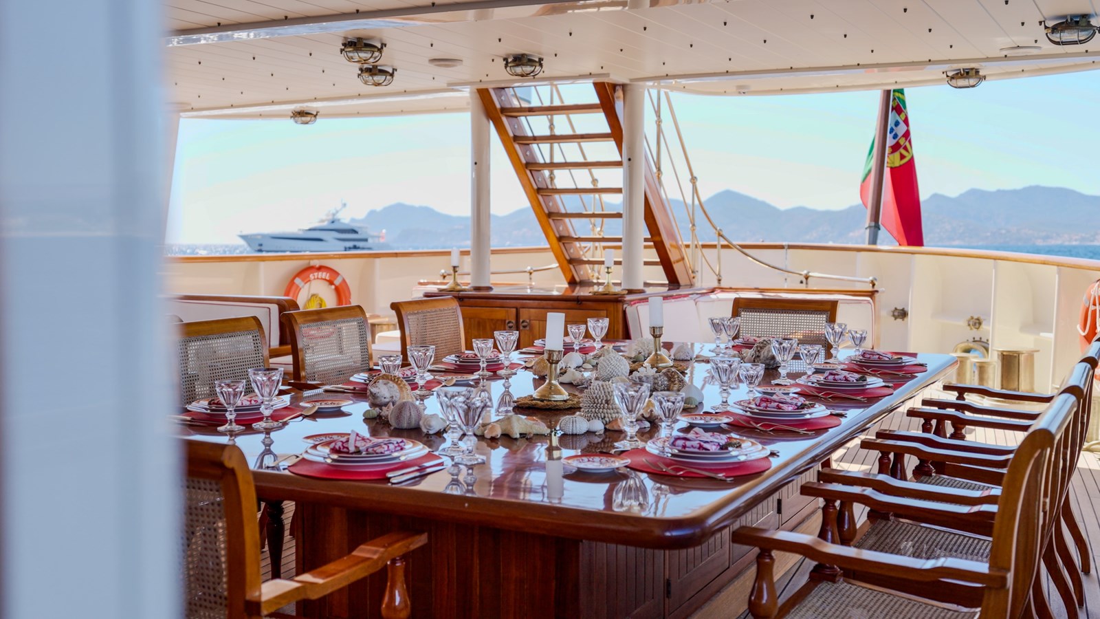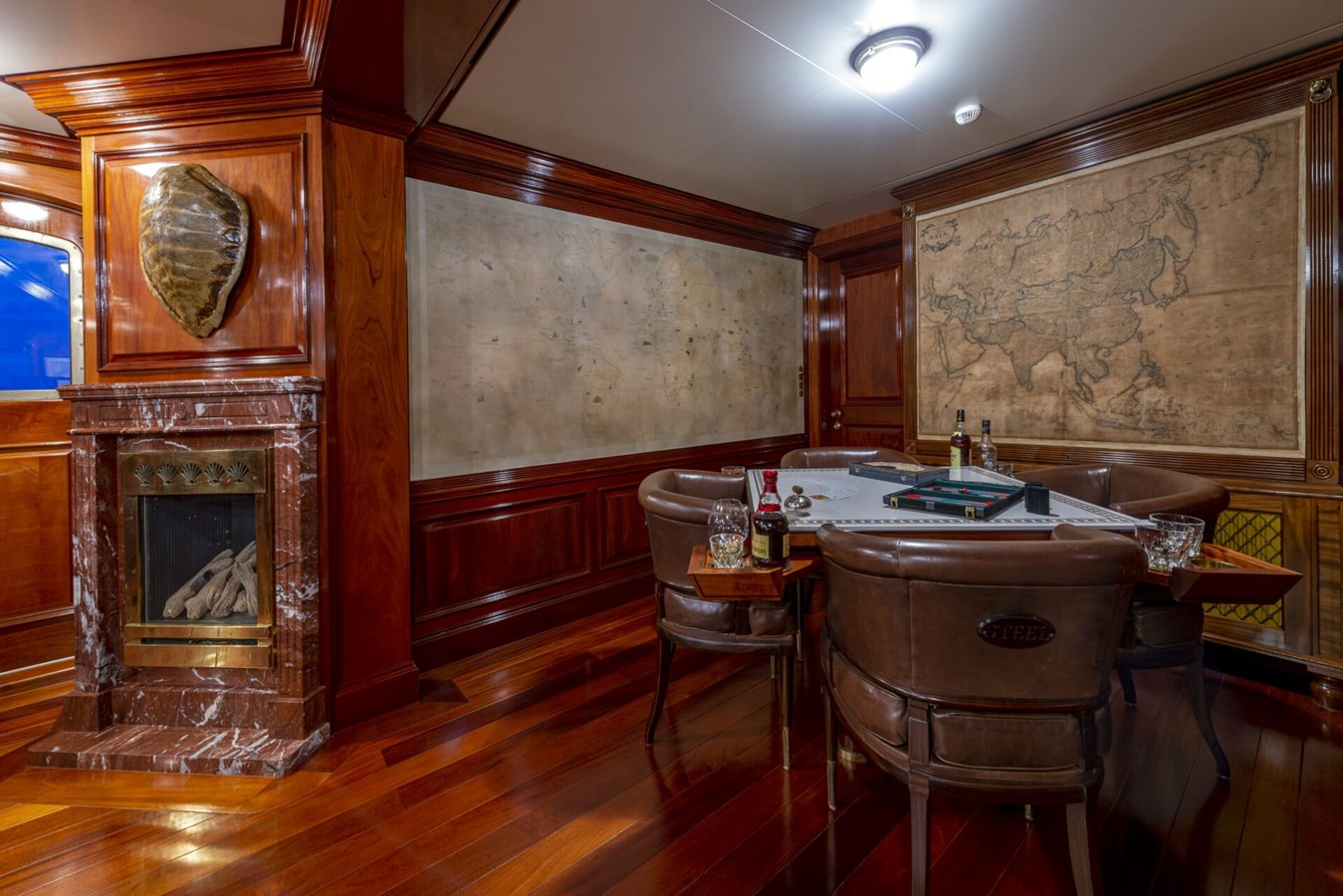 - Timeless classic English gentlemen’s club interior with 7 guest cabins